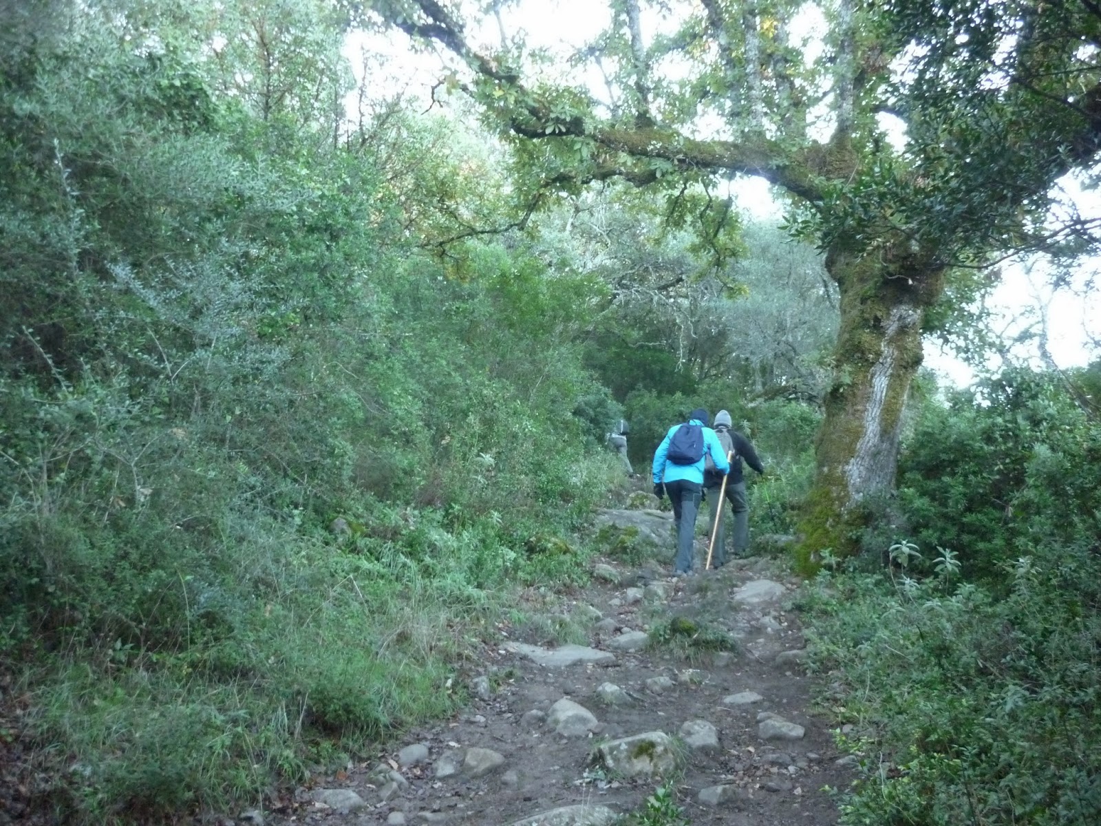 Desde el refugio hasta la cumbre nos separaba un camino forestal, con un desnivel de unos 600 metros aprox, donde en sus primeros metros de subida se podía apreciar gran cantidad de alcornoques para la producción del corcho.