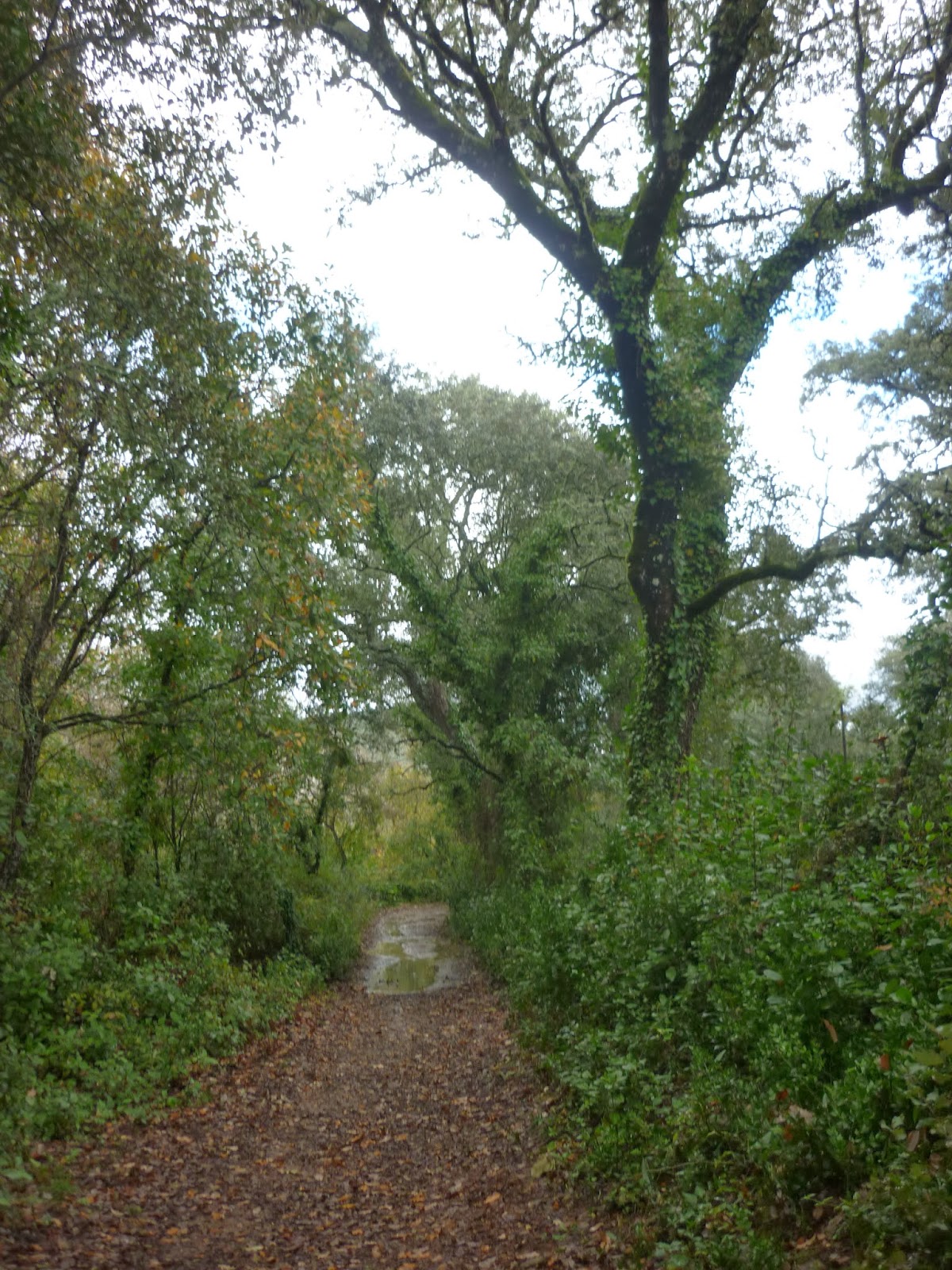 Comenzó a llover y tuvimos que tirar de nuestros impermeables y capotes para refugiarnos del agua. La lluvia no era muy intensa y nos permitió disfrutar de nuestra caminata, e incluso le dio cierto encanto a la ruta.