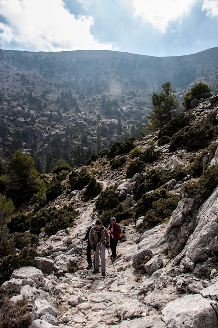 Descendimos por la Sierra del Pinar para encontrar de nuevo el sendero que nos llevó hacia la Cañada de la Cuesta de los Hornillos. Mientras bajamos entre pinsapos, encontramos algunos cedros que fuerón la delicia de algunos miembros del grupo que nunca habían visto este tipo de árbol.